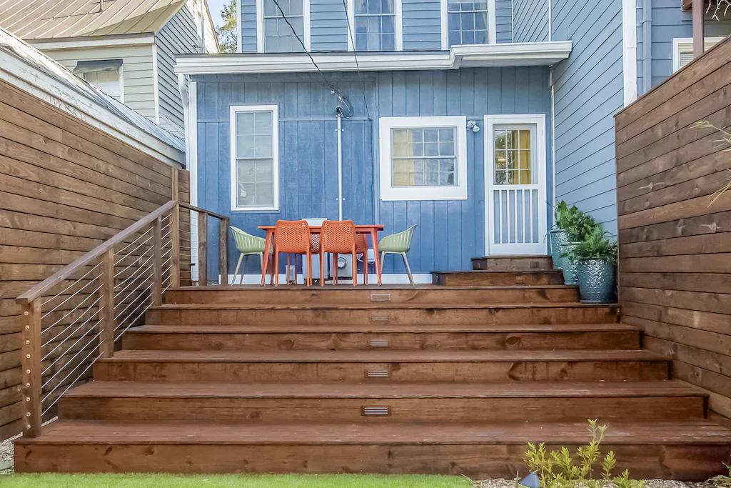 The Escape on Jones is not owned by a factory rental company, but is instead the culmination of our family’s dream. We visited for years and as much as we love the beauty of all the historic homes, we struggled to find a rental that felt safe for our young children. Steep rickety staircases, peeling paint, dark corners, and hardscaped courtyards led to anxiety-ridden rental experiences. So when a fixer upper hit the market, we decided to do something different.