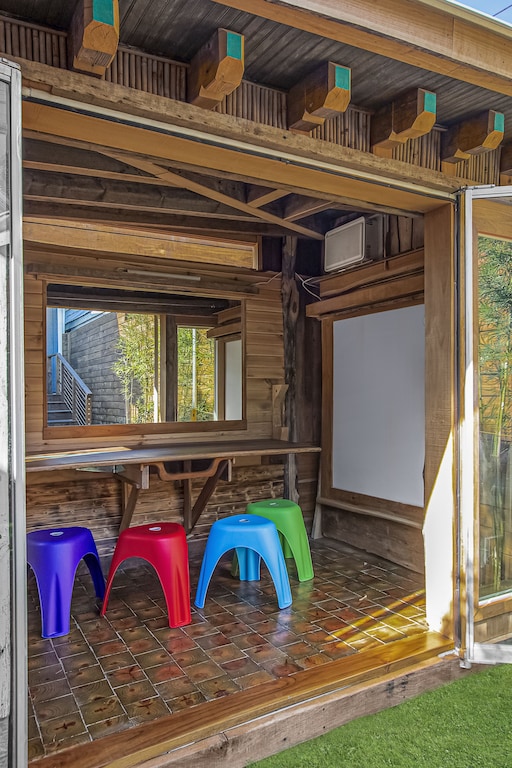 Out went the steep brick staircase, and in went the deep deck steps (can only fall one at a time!). Out went the cinder blocks, in went the turf play area and soft stone pathways (ok, so our littlest one does still try to eat stones!). Every detail of The Escape on Jones was designed with child safety in mind, and as an inspirational space for creatives of all kinds.